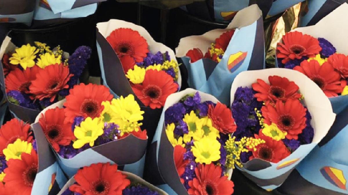 Glöm den gamla textraden om att skänka 10 000 röda rosor – Stockholms finaste blombukett att ge bort går givetvis i Djurgårdens färger!