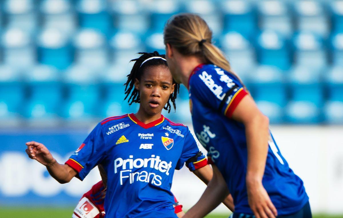 En intention som gav energi och DIF följde upp med en ny fin chans där Motlhalo tråcklade sig igenom i boxen och tvingade Mimmi Paulsson-Febo till en vass benparad. Strax efter var det Östergaard Larsens tur att briljera när hon tippade undan ett farligt inlägg från Frida Skogman.