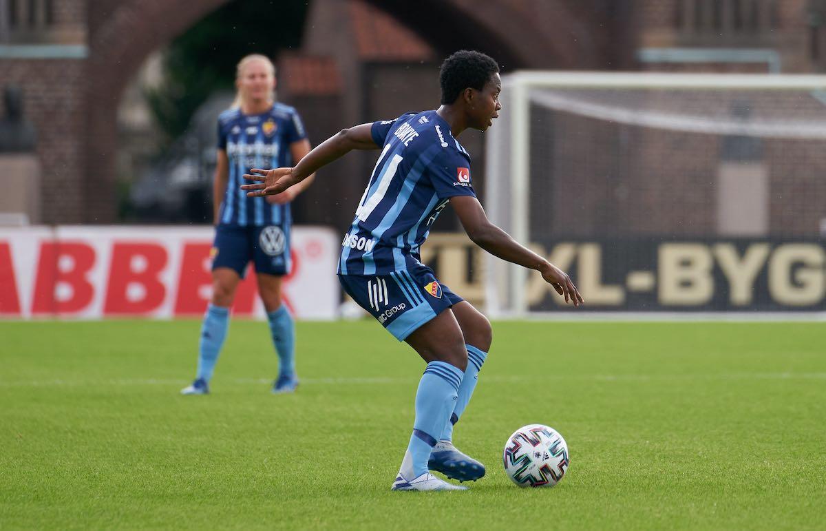 Djurgården mönstrade en fyrbackslinje bestående av Camilla Huseby, Gudrun Arnardottir, Portia Boakye och Rachel Bloznalis framför Kathrine Östergaard Larsen.